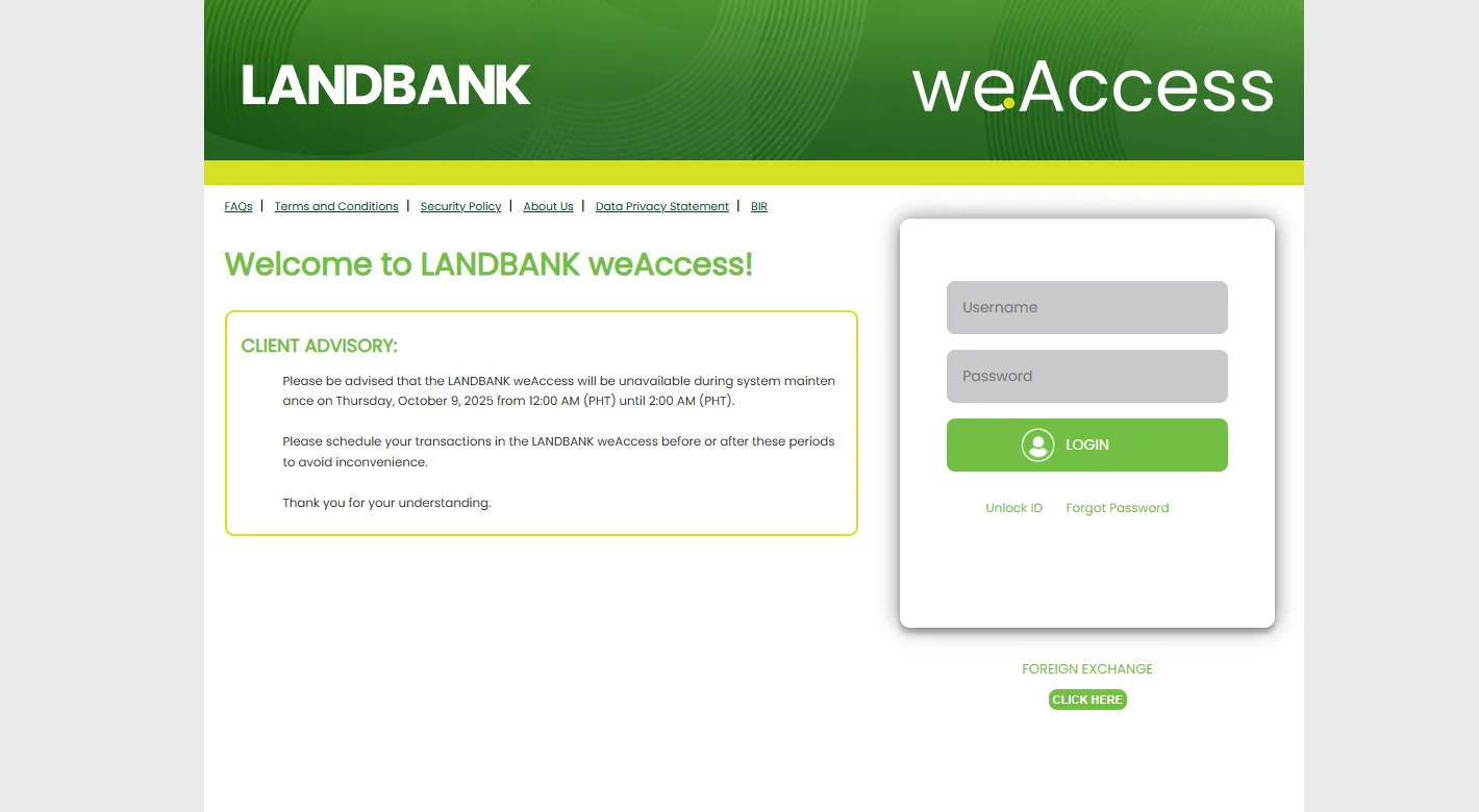 The LANDBANK weAccess is the Bank's Internet Banking facility for institutional customers which allows private and government entities with enrolled Regular Savings Accounts, Current Accounts, and High Yield Savings Account to manage their transactions online.